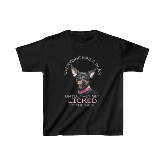 "Everyone Has a Plan Till They Get Licked in the Face" (Miniature Pinscher Edition) - Kids Heavy Cotton™ Tee
