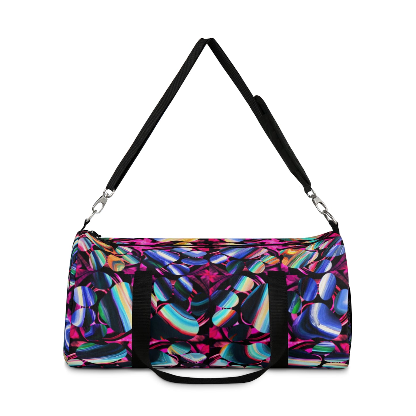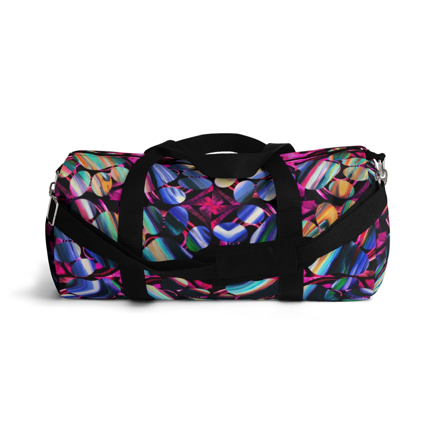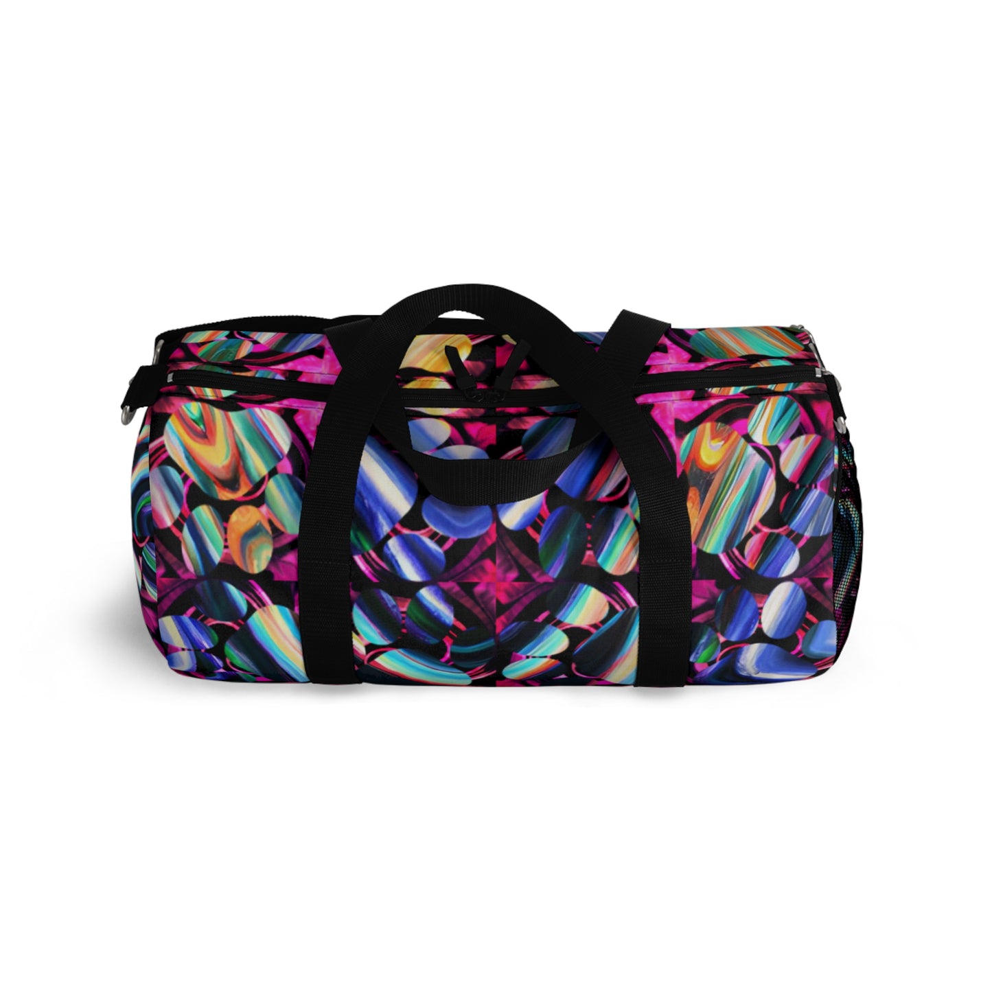 Introducing the most stylish way to work-out and travle: a Duffel Bag with Psychedelic Tile Design.✨🕺 This roomy bag fits all the wardrobe staples you need for a day at the gym, a weekend away, or a business trip. It's strong and durable and sure to make a statement wherever it goes. 💃 Plus, it has a sleek design that will take you from the office to the beach and back in style.