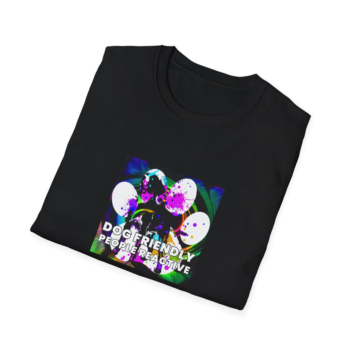 Fuzstylez - "Dog Friendly, People Reactive" (colored swirl) Unisex Tee