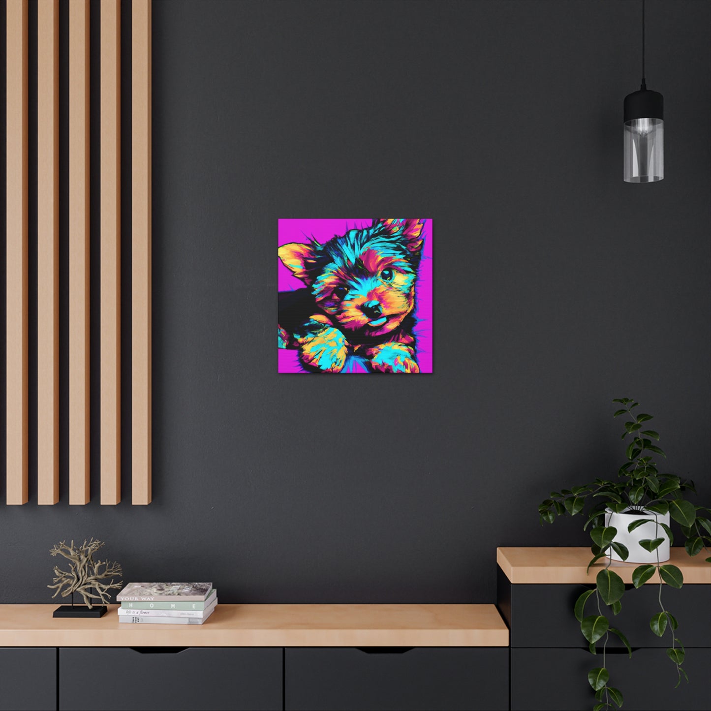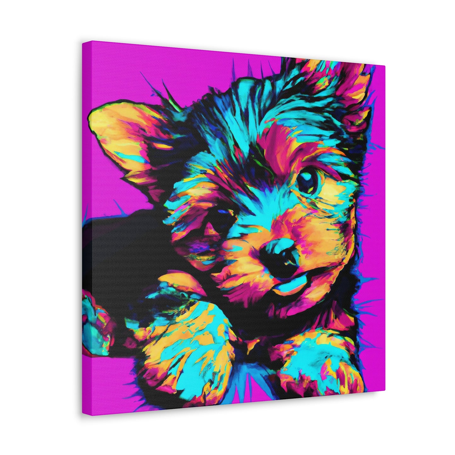 Say goodbye to plain walls and say hello to this 💥awesome💥 Yorkie pup canvas! Experience the beauty of synthwave pop art in your home with this stylish wall art. Show off your favorite pup breed on your wall with this perfect piece of art! Your wall will really stand out and you'll never have to worry about it being 🐶 disobedient 🐶 like a real pet. Now you can enjoy a living art piece in any room! Hashtags: #yorkiesofinstagram #synthwave #popart #canvaswallart #uniqueart #homedecor #walldecor #statementart #pets #puppylove #yorkshireterrier #anddontforgettosmile