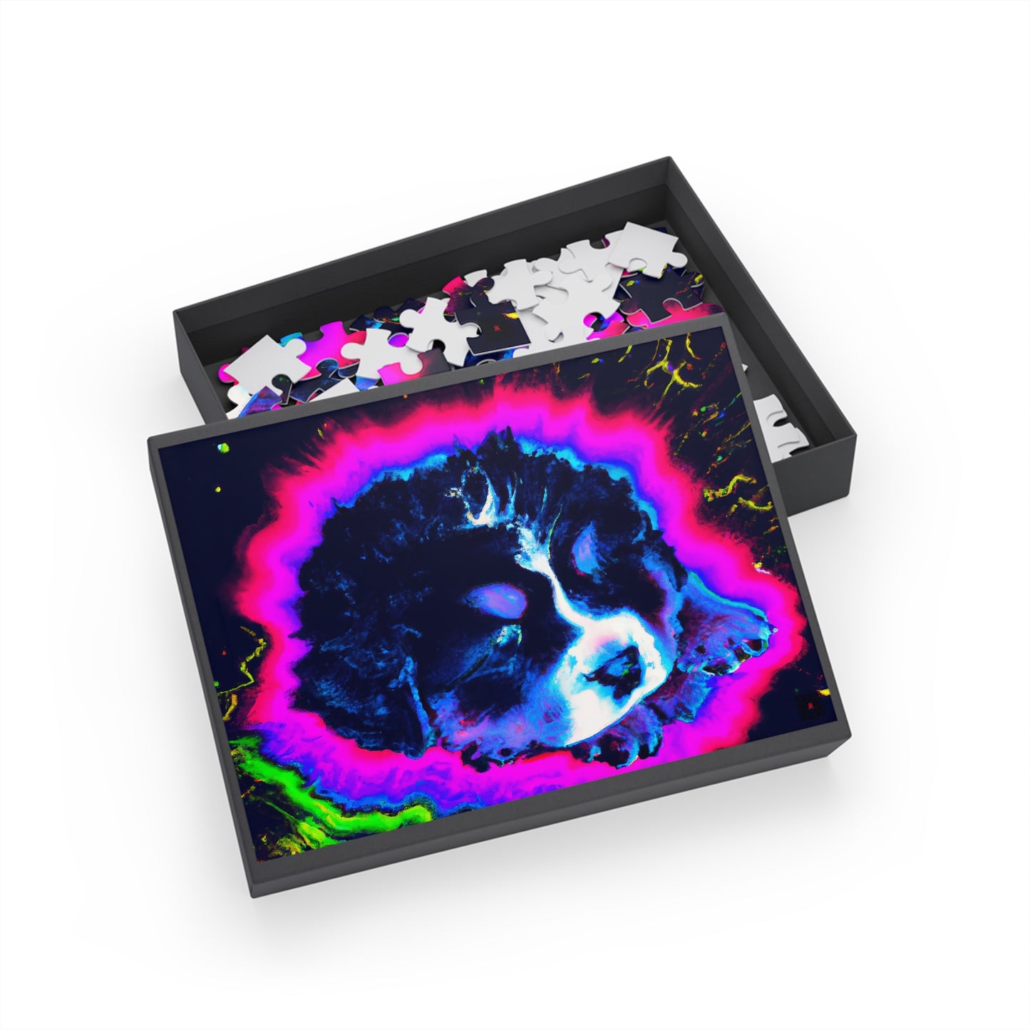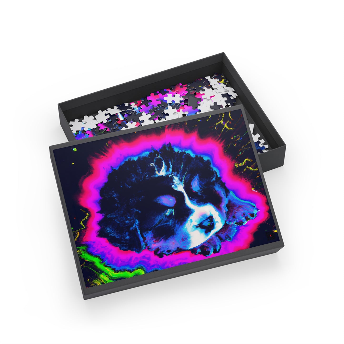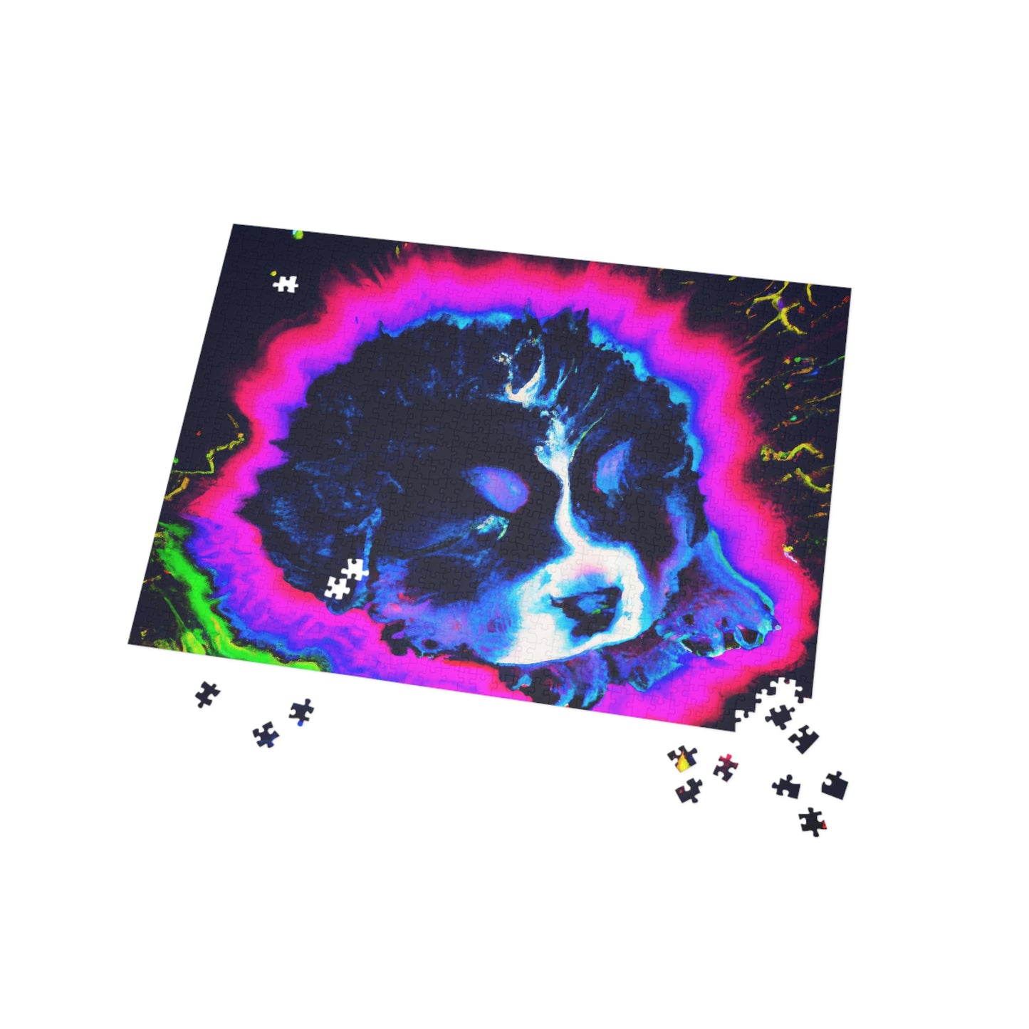 This funky puzzle featuring a Bernese Mountain Dog puppy sporting an '80s synthwave look, will surely bring all the retro vibes to your home! Upgrade your game night with a modern twist - combine all the pieces to discover some funky pixel art. 🤩 The cool colors and unique pixelated pattern will make your puzzling experience one of a kind! Plus - because who doesn't need pictures of cute puppies in their lives? 😍 P.s. You may not realize it but you ABSOLUTELY need this puzzle in your life. #game #puzzle #retro #vibes #puppy #art #synthwave #pixel #colorful #trendy #modern #cute