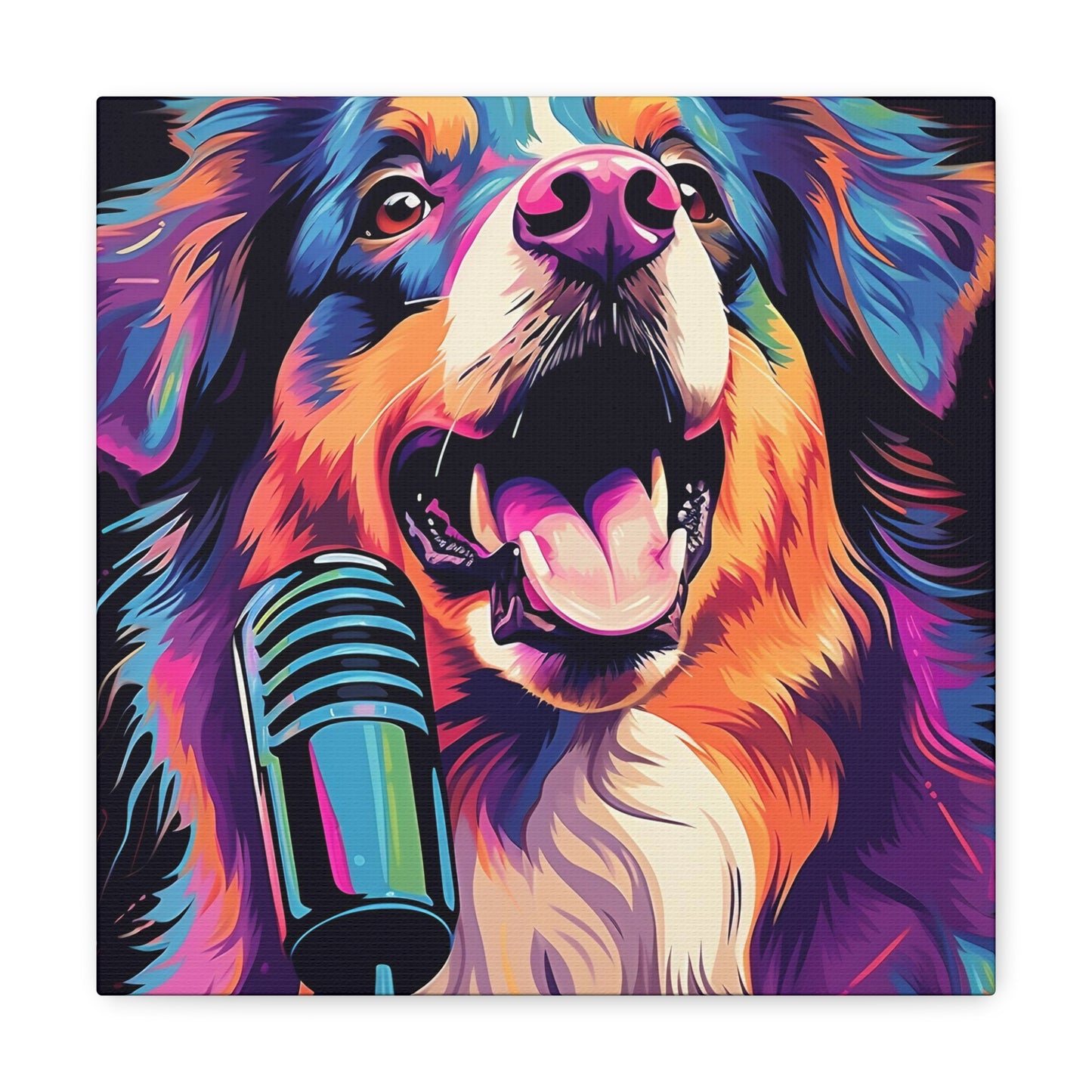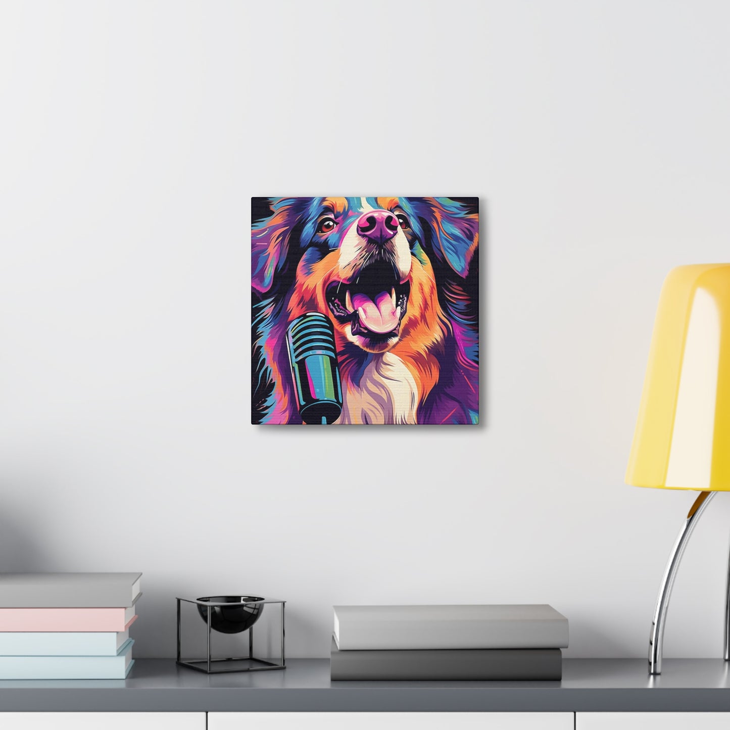 Spice up your space with this quirky canvas featuring a bold Australian Shepherd puppy crooning his heart out on a synthwave pop background straight from the 80s! Surrounded by radiant neon hues, with a microphone in paw, this four-legged pop-star captures the imagination 🐾 🎤 Bring the vibrant warmth and loving chaos of a four-legged troubadour to your home without the hassle of vet bills, or surprise “gifts” in your shoes! #AussieShep #PuppyLove #Synthwave #WallArt #PetArt #PopArt #VocalVibes #80'sRevival #NeonTones #RockStarPooch. Laugh off those moments when your real pet acts up